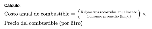 Costo anual total = Depreciación anual + Seguro anual + Mantenimiento anua l+ Combustible anual + Impuestos anuales + Financiamiento anual + Estacionamiento anual + Otros gastos anuales
